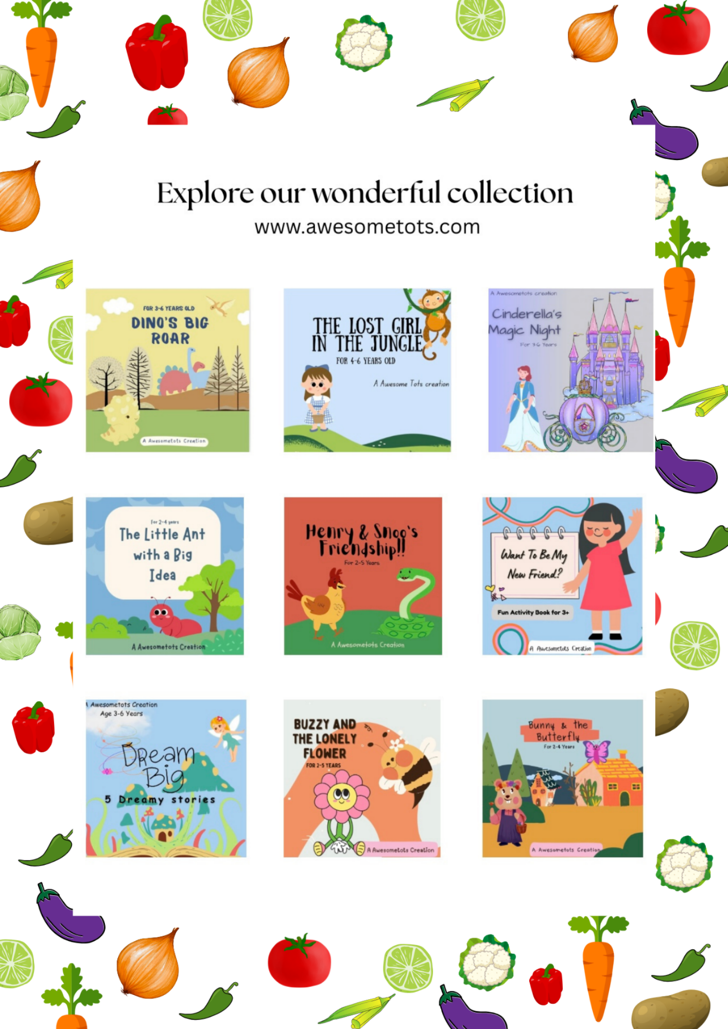 A book for introducing various vegetables to your child, some very familiar some not so much. An educational book designed to broaden you child's learning. An AwesomeTots creation.